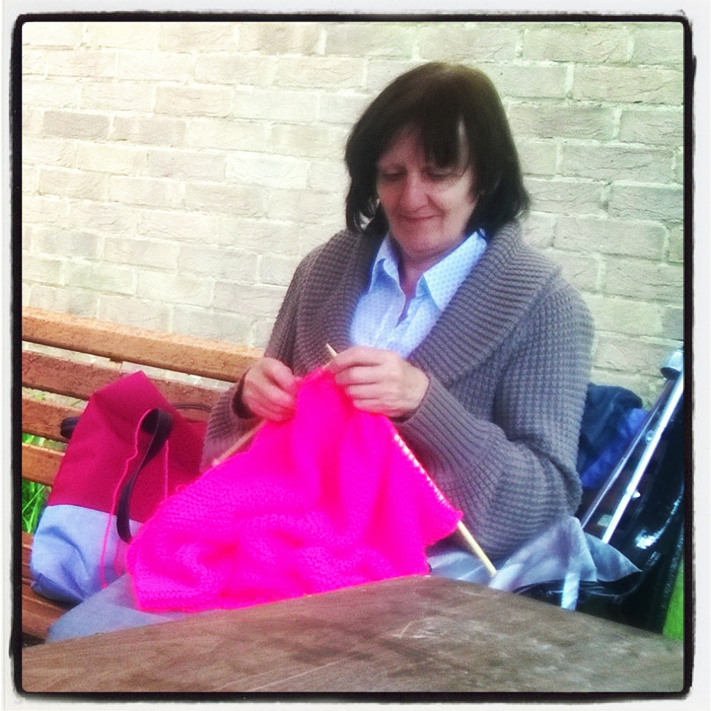 Täna hommikul turul nägin jälle seda daami, kes eelmisel pühapäeval mu kudumistöö üle võttis. Edeneb! Tuumarelvadel pole mingit lootust, kui teisel pool rindejoont on sellised mutid: