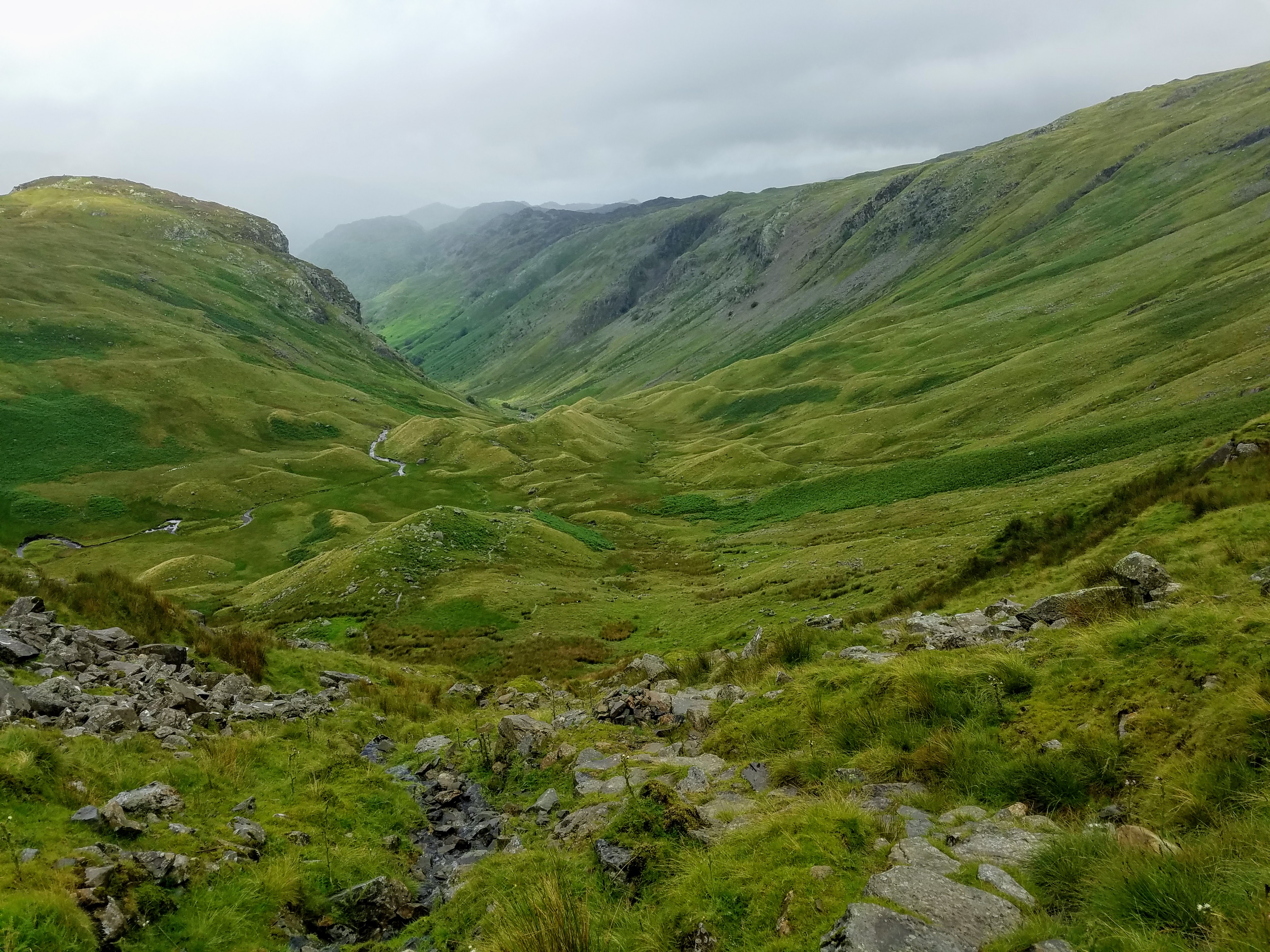 kolmandal päeval… ronisin jälle mäe otsa (600 m), tegin seal jalad märjaks ja ronisin teiselt poolt alla. paistsid põhiliselt teised mäed, see org, kust ma tulin, ja see org, kuhu läksin. aga väga kaunis oli see kõik, pildilt ei saa arugi. jõed ja kosed ka muidugi. vahepeal sadas vihma, aga hea on see, et kui kõik on nagunii märg, siis vihm ei sega eriti. pärastlõunaks jõudsin Grasmere’i, kus kohtusin üle kolme päeva jälle mobiilileviga, käisin kohvikus söömas ja kolisin sisse hostelisse. koroonapiirangute tõttu olin sunnitud kinni maksma terve nelja voodiga toa – aga oh, kus mul on siin ruumi telki, magamismatti ja teisi märgi asju kuivatada!