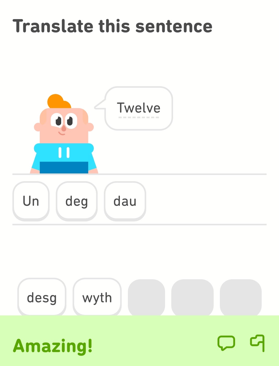 2. mikrofoni pole vaja, kõmri keele kõnetuvastust vist ei ole üldse olemaski ja Duolingo kursuses seetõttu hääldusharjutusi pole. (mõnede keelte jaoks, nt hispaania või prantsuse, on need olemas, aga sel juhul saad ise valida, kas saad/tahad neid teha või lülitad välja.)
