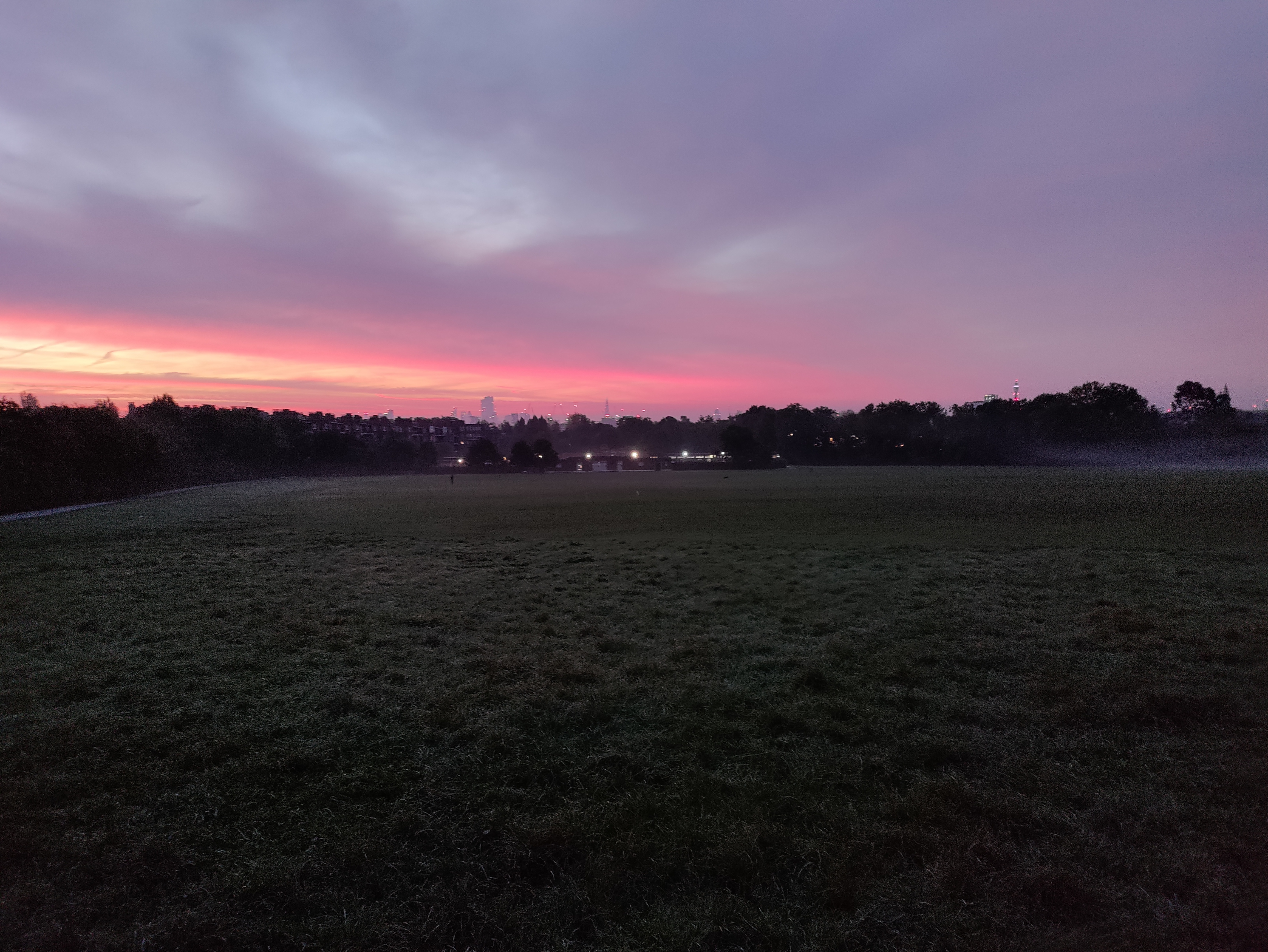 üks oktoobrihommik, Hamptsead Heath. esiplaanil Lido, kaugemalt paistab City