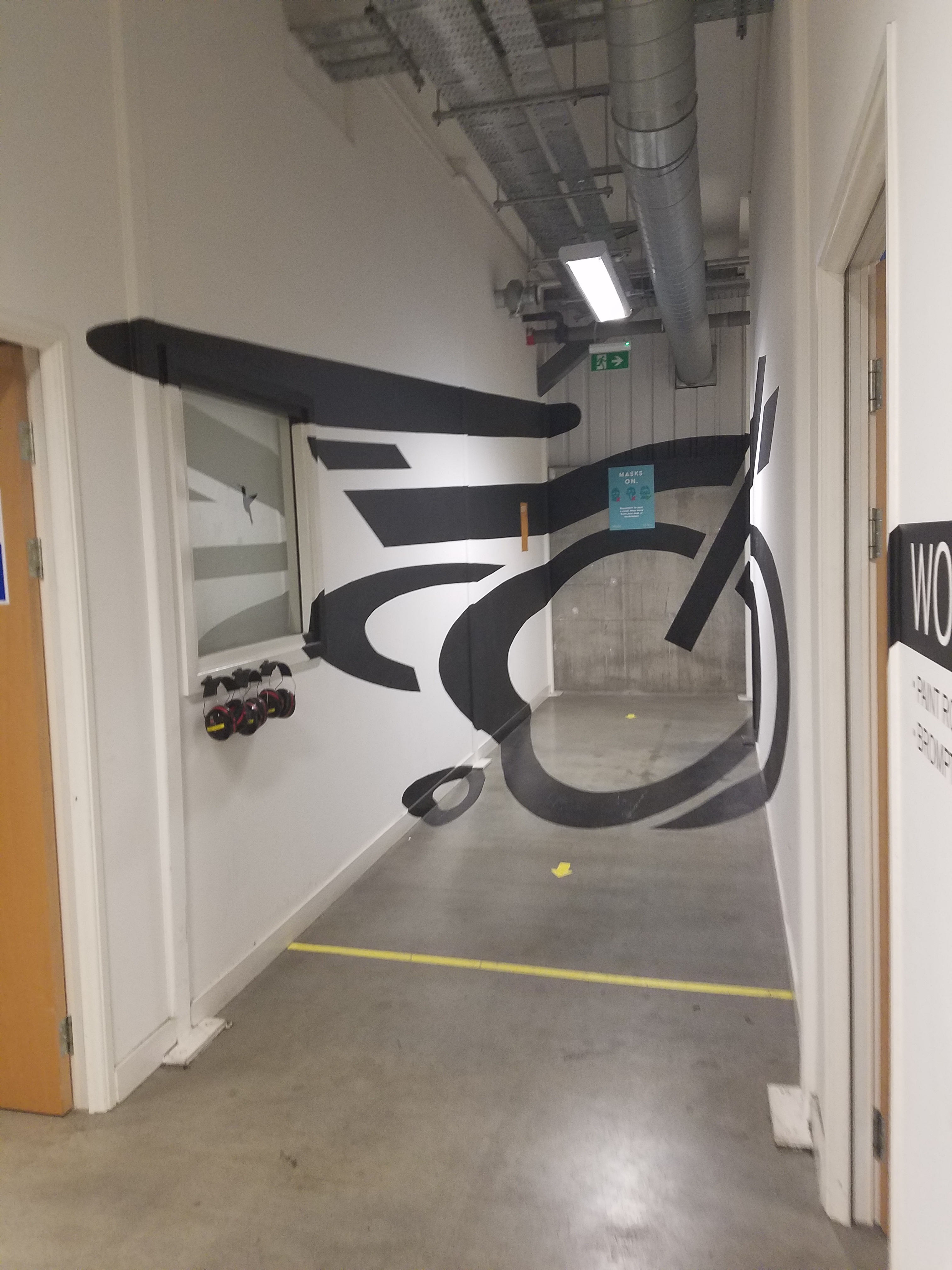 kuna mul oma rattast ühtegi asjakohast fotot varuks pole, siis illustreerin kogu lugu hoopis tehasekoridorist leitud optilise illusiooniga – seinamaaling vale ja õige nurga alt vaadatuna.
