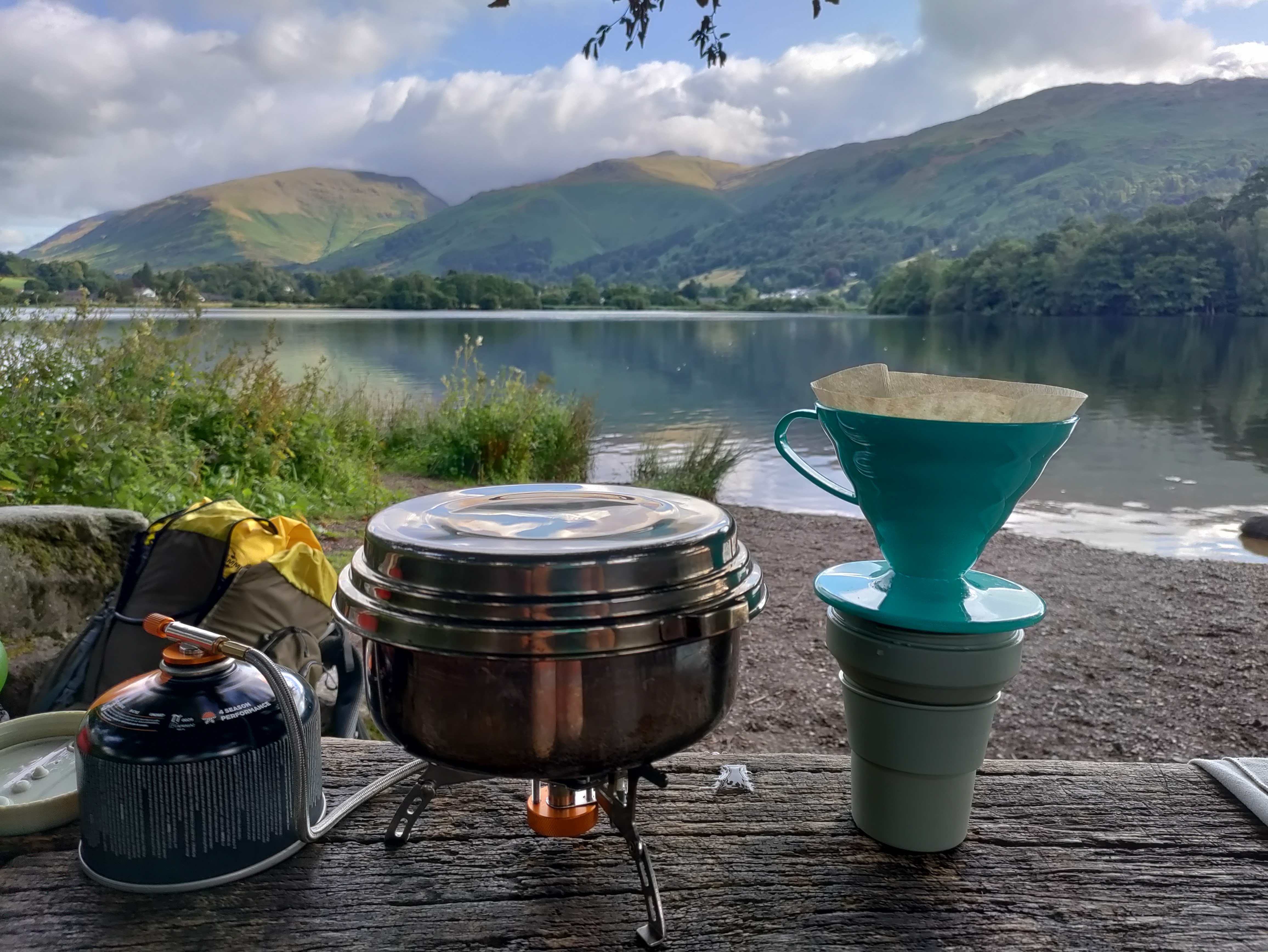 hästi ilus hommik täpselt neli kuud tagasi. ärkasin telgis lähedalasuva künka otsas, käisin kõigepealt Grasmere’is ujumas ja siis keetsin hommikukohvi ja putru. jaa, mul on kohvifiltrid ja filtrihoidja matkal kaasas. need ei kaalu suurt midagi ja rõõmu on neist palju. ja oodake, kuni te mu mokakannu näete.