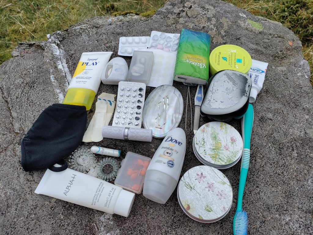 enne, kui saab kaks aastat täis lubadusest, et matkahügieenist tuleb (võibolla) ilublogi sissekanne… võtan selle teema ette, sest lõpuks ometi oli mul matkal meeles teha pilt sellest, mis mul pesuasjade kotis kaasas on. palun, täiesti tsenseerimata: