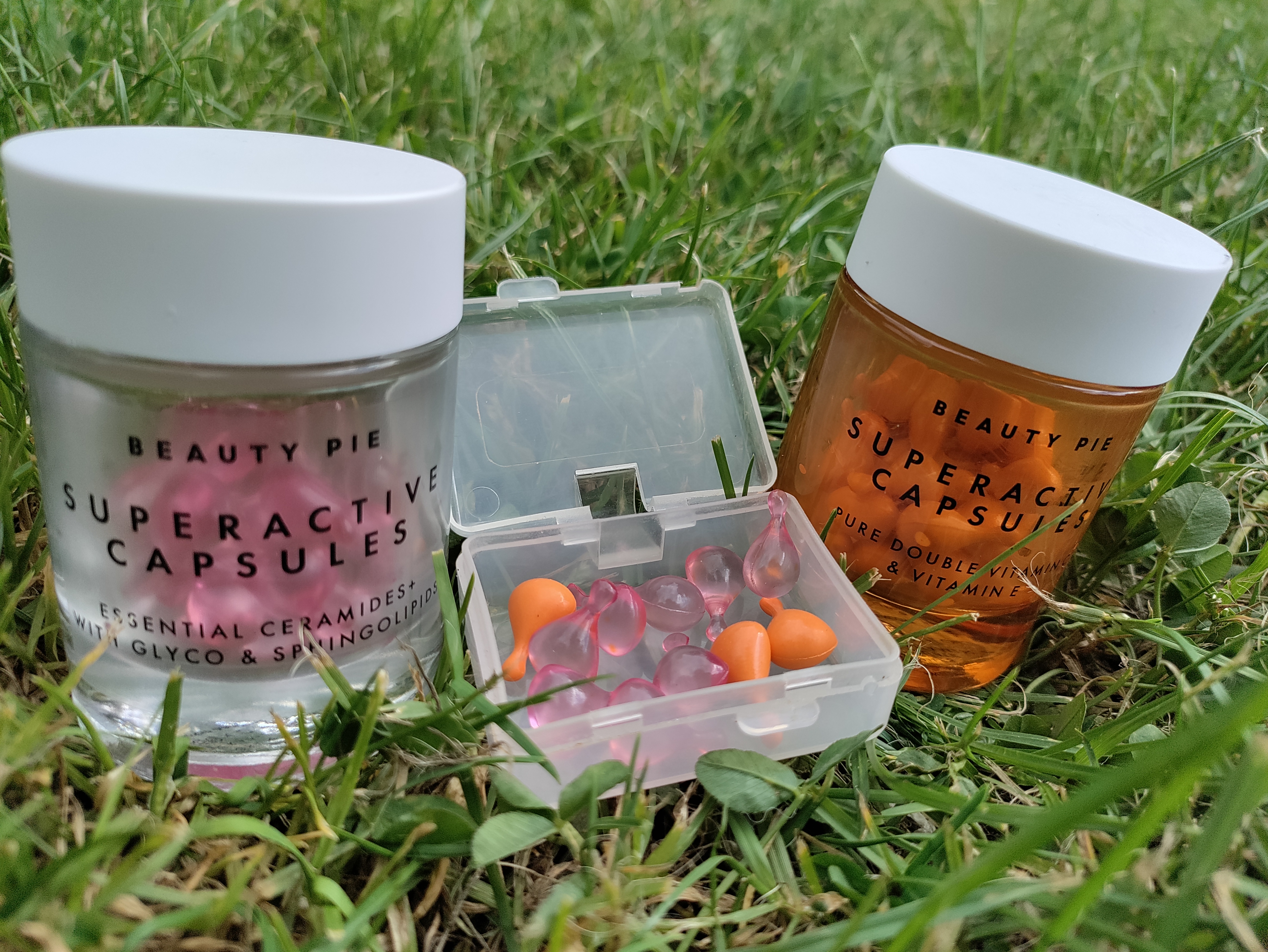 puhastuse järel tuleb seerum. olen suur seerumite sõber ja huviline ja kodus on mul neid kasutuses erinevaid ja põnevaid, tavaliselt paarikaupa rotatsioonis. reisitingimustes kasutan Beauty Pie seerumikapsleid. mu lemmik neist läbi aegade on olnud Essential Ceramides, aga praegu on pooleli ka purk C- ja E-vitamiini omi. need villin ümber ühte (ilmselt Mujist ostetud) plastkarpi ja kasutan siis, kuidas tuju tuleb, ühed aitavad rohkem nahka niisutada ja teised… on muidu mõnusad. kuna kummaski purgis on 60 kapslit ja kodus neid ei kulu, siis ei tule väga tihti juurde tellida (hea, sest jällegi, miks nad peavad sellistes rasketes klaaspurkides olema?). et oleks selge, neid ikka kasutatakse välispidiselt, mitte ei võeta sisse – keerad kapsli otsa küljest ära, pigistad seerumi peopessa ja määrid näkku, tühi kapsel läheb prügikotti (ta on küll vetikatest tehtud ja biolagunev, aga ma muidugi ei jäta teda kuhugi loodusesse biolagunema).