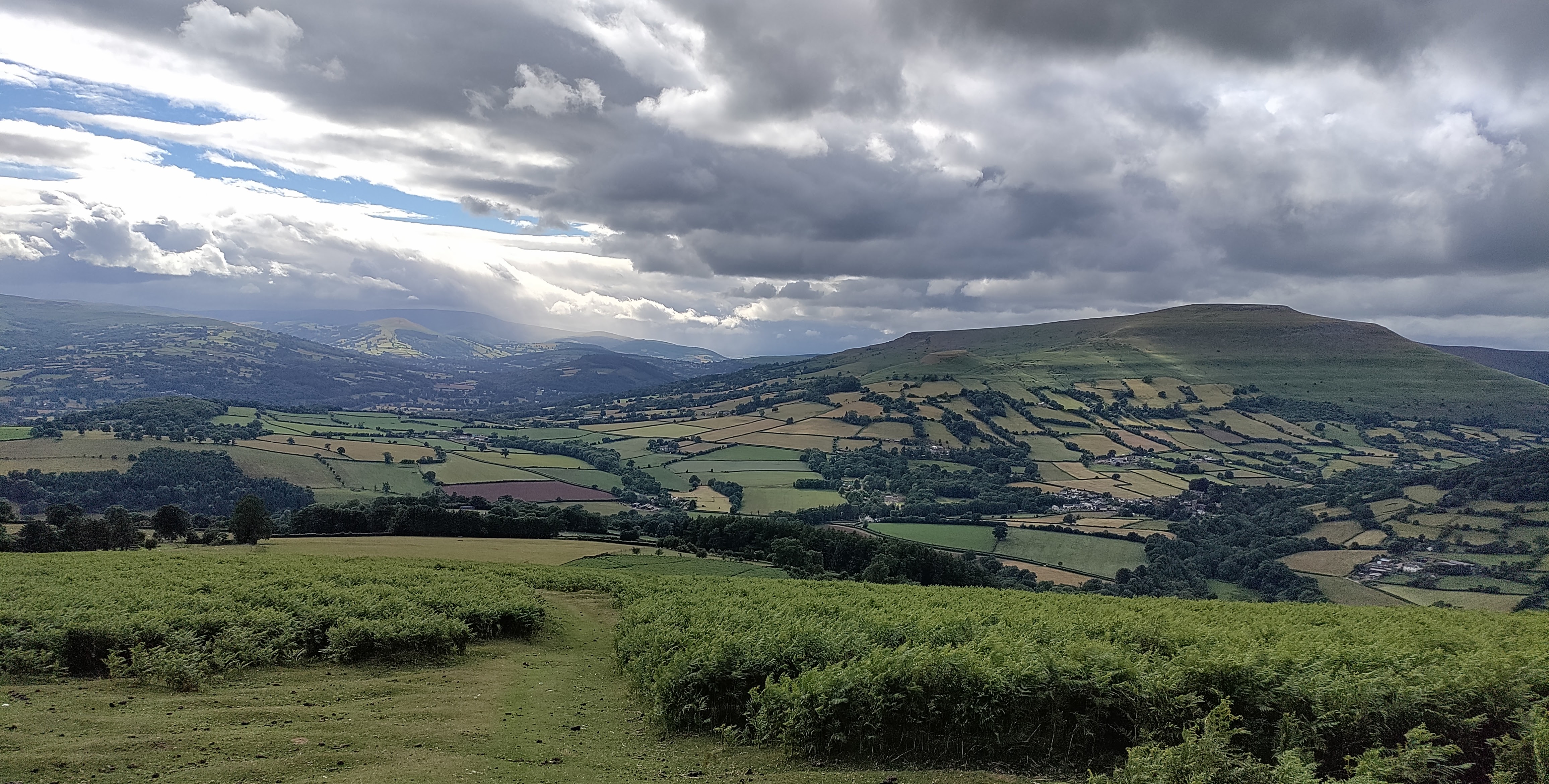 nojah, ja seal Sugar Loafi tipus olin ma juba poolel teel Crickhowelli ja kanalist samas üsna kaugel. Crickhowellis omakorda, kui ma sinna järgmisel hommikul ükskord kohale jõudsin, tegin teoks ammuse plaani ja ronisin hoopis Table Mountaini otsa. Table Mountain ei ole alloleval pildil mitte see suur lame tipp paremas servas, vaid väga väike, aga ka lame… nublu sellest veidi vasakul mäenõlval. vist peab zoomima, et näha.