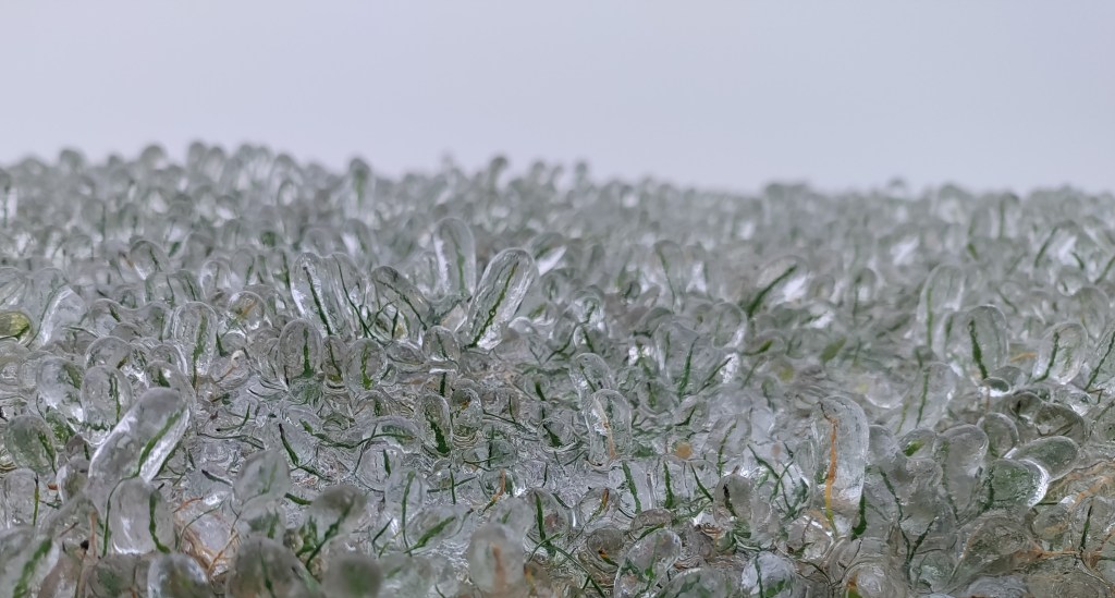 Pildid tuletavad eelmise talve algust meelde, kui siinkandis jäävihma sadas ja iga väike tuul terve ilma klõbisema pani. Käisin koeraga jalutamas ja sõin jääpurikaid puude otsast.