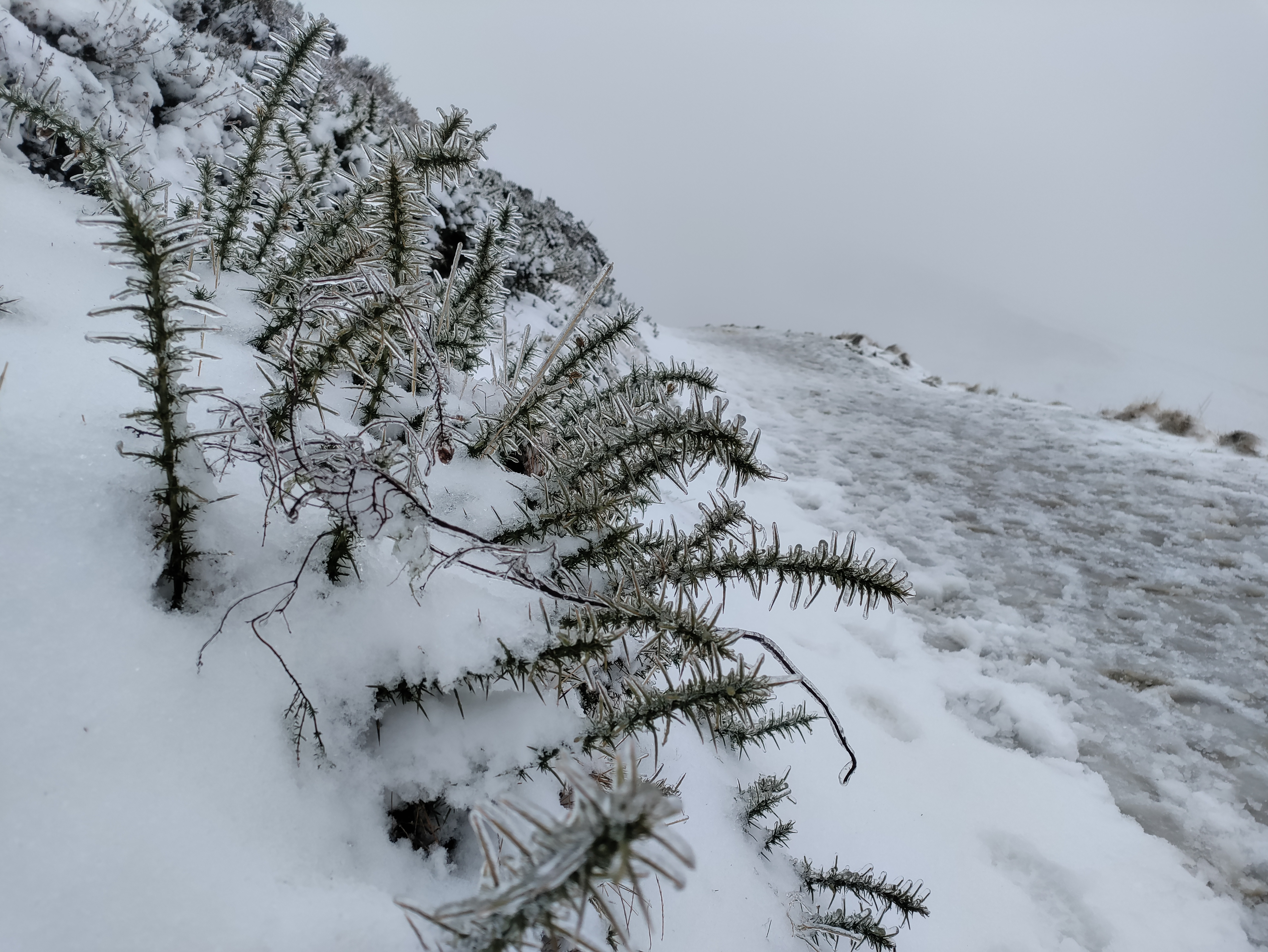 sinna mäe otsa suundusime plaaniga vaadet vaadata, aga oli udune ja vihma lund lörtsi midagi sadas ja kuigi kaugele ei näinud. see-eest tasus vaadata lähedale.