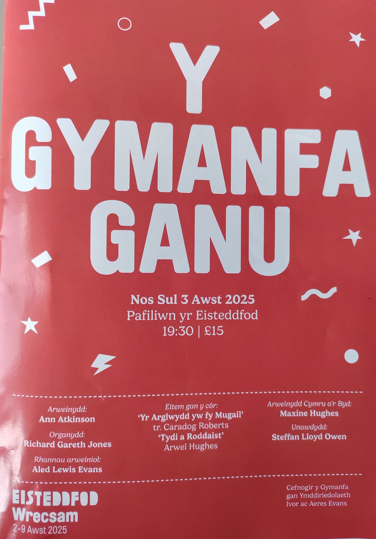 no vot tuleb välja, et cymanfa on selline ettevõtmine, kus inimesed tulevad kokku ja laulavad koos kirikulaule. (või mis see eestikeelne sõna õieti on, kui inglise keeles on hymn ja kõmri keeles emyn? kas koraal on mingi teine asi?) neljal häälel, dirigendiga, kes võib vajadusel kogu peo seisma panna ja öelda, et kuulge, sõbrad, see läks küll metsa, teeme uuesti ja paremini. palvetamist vm jumalasõna sinna juurde ei toimu, kuigi aset leida võib see laulupidu kirikus või kabelis. aga ei pruugi. võib näiteks toimuda Eisteddfodi käigus ehk siis mudasel põllul ajutises telgis – mis, selgub, ongi meil augusti alguses plaanis.